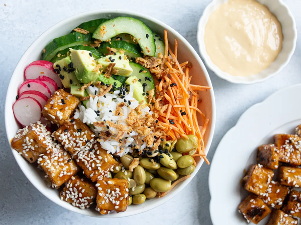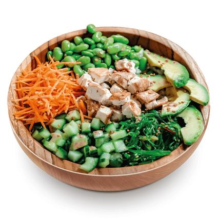 Japanese tofu, Avocado, Seaweed salad, Edamame beans, Cucumber, Sesame mix, Carrots & Sesame dressing