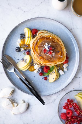 Onze brunch bevat een selectie van heerlijke broodjes, croissants, koffiekoeken, een pannenkoek met suiker en siroop, een omelet , gerookte zalm, verse, twee smeersalades, k, kaas en salami, brie, yoghurt met granola, confituur, sinaasappelsap en boter…