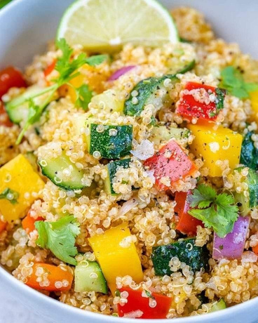 Gekruide Kip, Gele rijst & Quinoa-Groentepan